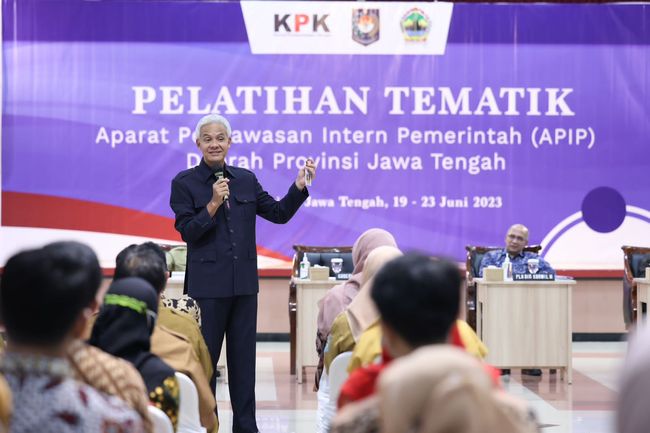 Gubernur Jawa Tengah Ganjar Pranowo bekerja sama dengan Komisi Pemberantasan Korupsi (KPK) menyelenggarakan pendidikan dan pelatihan (diklat) tematik untuk Aparat Pengawasan Intern Pemerintah (APIP) se-Jateng. Kegiatan ini dilaksanakan di Auditorium Sasana Widya Praja, BPSDM Provinsi Jateng, Kota Semarang.