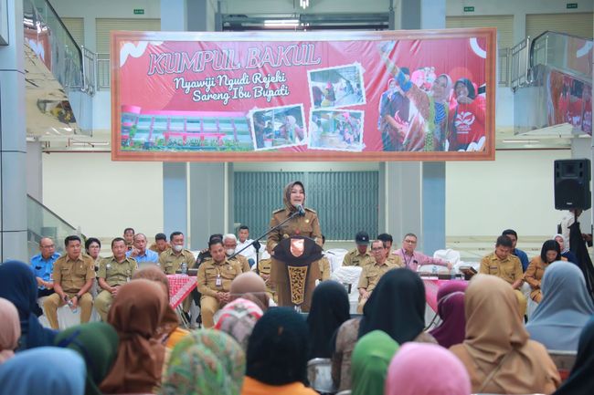 Kegiatan Sosialisasi ke Pedagang Pasar Gedhe Klaten dengan tema 'Kumpul Bakul Nyawiji Ngudi Rejeki Sareng Ibu Bupati' diselenggarakan di Pasar Gedhe, Senin siang (26/6/2023). Kegiatan tersebut dihadiri oleh Bupati Klaten Sri Mulyani, Sekretaris Daerah Kabupaten Klaten, Jajang Prihono, Asisten Pemerintahan dan Kesra, Kepala OPD Kabupaten Klaten dan tamu undangan lain.