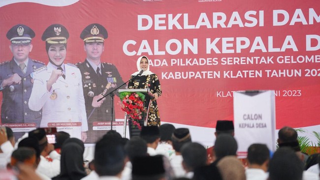 Deklarasi damai tersebut turut dihadiri pula oleh Bupati Klaten Sri Mulyani bersama dengan jajaran Forum Koordinasi Pimpinan Daerah (Forkopimda) Kabupaten Klaten. Dalam kesempatan tersebut, Sri meminta seluruh peserta Pilkades Serentak Gelombang I untuk memegang teguh komitmen damai yang sudah ditandatangani. Ia juga meminta seluruh cakades yang bertanding agar mengendalikan pendukungnya untuk menerima seluruh hasil pilkades.