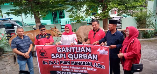 "Harapannya ibadah kurban menjadi berkah kita semua dan semoga bertambah rezekinya. Di DPC tadi pagi juga ada kiriman satu ekor, jadi total totalnya ada delapan ekor sapi," imbuh Sri Mulyani.