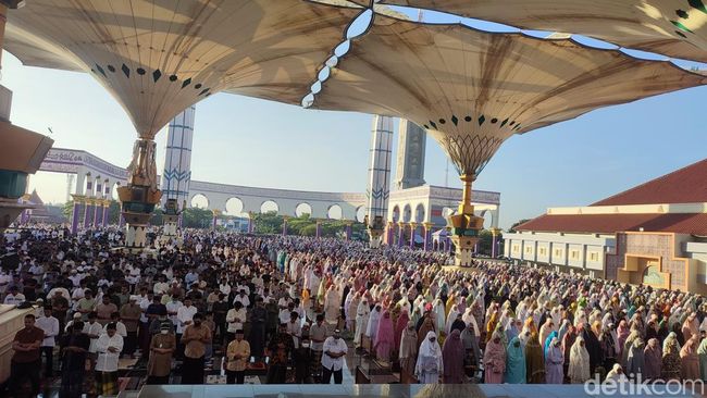 Masjid Agung Jawa Tengah (MAJT) dipadati jemaah salat Idul Adha 1444 H pagi ini. Para pemotor bahkan sempat antre untuk masuk ke MAJT.
