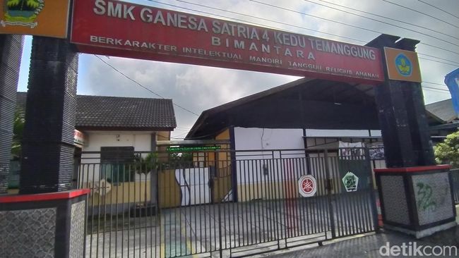 Pantauan detikJateng, Rabu (5/7/2023) pukul 10.00 WIB di SMK Ganesa Satria 4 yang berlokasi di jalan Raya Kedu-Parakan Km 1 Kedu, Temanggung, Jateng, tidak terlihat adanya aktivitas. Gerbang sekolah juga terlihat tertutup dan dikunci gembok.