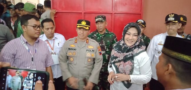 Bupati Klaten Sri Mulyani, Kapolres Klaten AKBP Warsono, dan Dandim 0723/ Klaten Letkol CZi Bambang Setyo Triwibowo mengecek pelaksanaan pilkades di Desa Karanganom, Kecamatan Klaten Utara. Desa tersebut sebelumnya dinyatakan masuk zona merah atau rawan konflik dalam pelaksanaan pilkades.