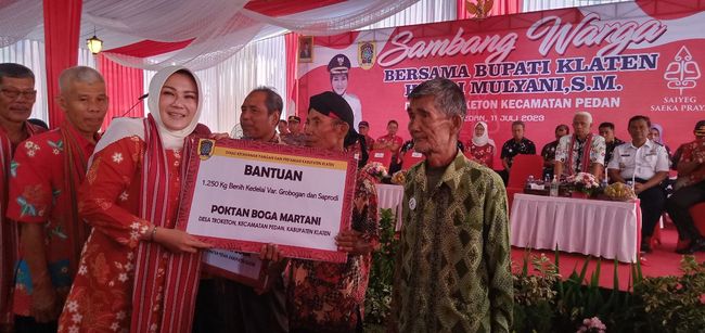 Bupati Klaten, Sri Mulyani bersama Forkompimda Kabupaten Klaten bertemu warga di acara sambang warga. Berbagai bantuan diserahkan Sri Mulyani kepada warga masyarakat dari berbagai kalangan.