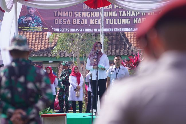 Bupati Klaten Sri Mulyani mengapresiasi anggota TNI, khususnya Kodim 0723 Klaten dan jajarannya yang bersinergi dan bekerja sama dalam program TNI Manunggal Membangun Desa (TMMD) Sengkuyung Tahap II. Program ini berlangsung di Desa Beji, Kecamatan Tulung, Kabupaten Klaten.