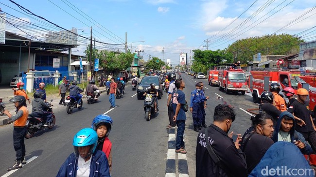 Kebakaran gudang ban dan oli di Desa Telukan, Grogol, Sukoharjo berdampak kemacetan parah di jalur Sukoharjo-Solo. Antrean kendaraan membentang hingga empat kilometer.