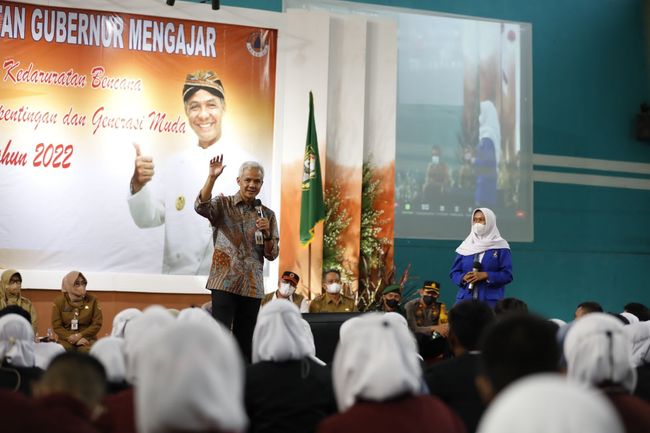 Ganjar menegaskan seluruh biaya sekolah SMA, SMK dan SLB negeri di Jawa Tengah gratis dan tidak ada pungutan biaya apapun.