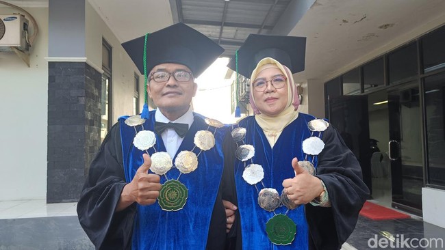 "Alhamdulillah bisa dikukuhkan bersama suami tercinta yang memang sudah kita persiapkan pada saat kuliah S2. Kita dari situ lanjut studi bareng, terus S3 bareng juga. Berkah Ramadhan kemarin akhirnya kita keluar SK bersama. Itu merupakan karunia Allah yang tidak terhingga bagi kami," ungkapnya.
