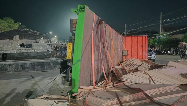 "Luka lecet-lecet di kaki untuk pengemudi truk sama penumpangnya," terangnya. Saat ini petugas masih fokus untuk evakuasi truk yang terguling dan muatannya yang tumpah di jalan.