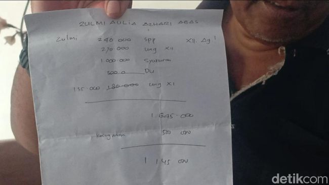 Petugas TU kemudian menyodorkan rincian biaya yang harus dibayar agar bisa mengambil ijazah. Dalam rincian itu, total biaya yang harus dibayar sebanyak Rp 1.645.000.
