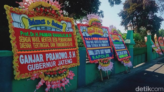 Ada belasan karangan bunga ucapan selamat dari para petinggi negara sampai pejabat daerah. Tampak karangan bunga dari Kapolri, Panglima TNI, Jaksa Agung, Gubernur Jawa Tengah, para bupati, wali kota dan Kapolres.