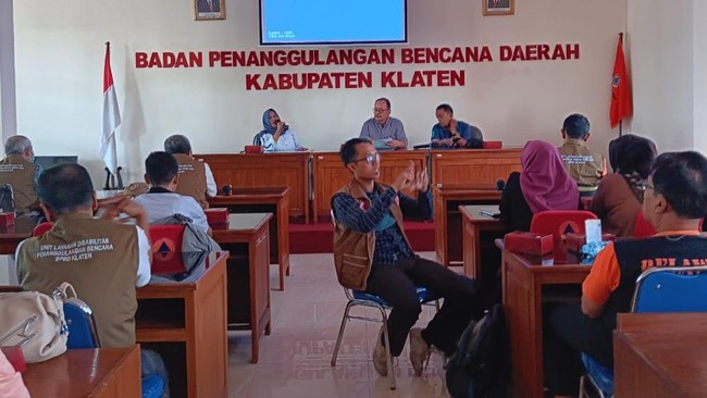 Badan Penanggulangan Bencana Daerah (BPBD) Kabupaten Klaten menggelar rakor dan sosialisasi pemanfaatan aplikasi evakuasi untuk masyarakat disabilitas. Aplikasi itu untuk memudahkan evakuasi warga difabel saat ada bencana, khususnya erupsi gunung berapi.