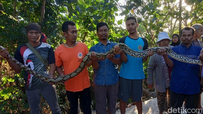 Dijelaskan Eko, ular tersebut diketahui warga yang melintas jalan desa sekitar pukul 05.00 WIB tadi. Warga kaget karena melihat ular di atas pohon sehingga melapor.