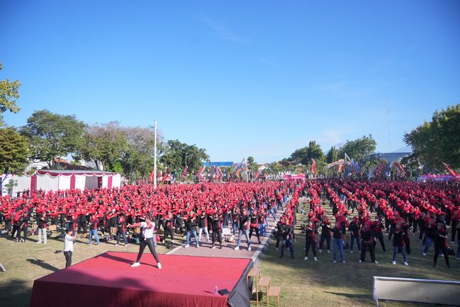 Ribuan kader kesehatan Kabupaten Klaten mengikuti senam zumba massal di Alun-alun Klaten. Kegiatan ini digelar dalam rangka menyambut Hari Jadi ke-219 Kabupaten Klaten dan HUT ke-78 Republik Indonesia.