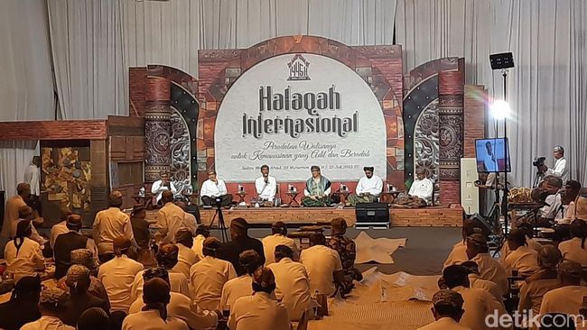 "Bangsa Indonesia beruntung karena memiliki tokoh ulama, tokoh wali, Raden Jafar Sodiq atau dikenal dengan Sunan Kudus, beliau merupakan salah satu wali sanga yang telah berjasa dalam penyebaran agama Islam di Jawa Tengah," kata Ma'ruf Amin saat memberikan sambutan secara daring pada acara halaqah Internasional di gedung Menara Kudus, Sabtu (23/7/2023).