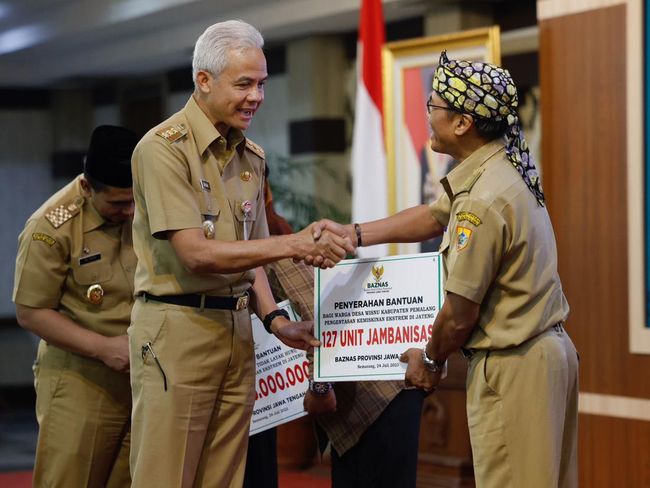 Gubernur Jawa Tengah Ganjar Pranowo bersama BAZNAS memberikan bantuan rumah tidak layak huni (RTLH), jamban dan bantuan modal usaha ekonomi produktif. Bantuan ini dalam rangka upaya pengentasan kemiskinan ekstrem di Jawa Tengah.