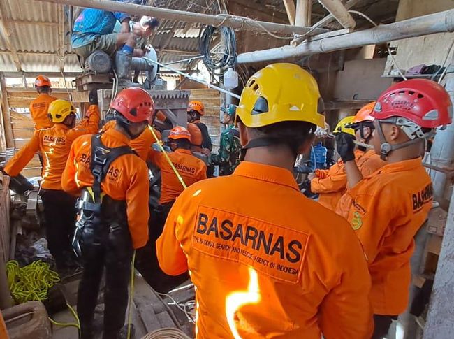 Kepala Basarnas Cilacap, Adah Sudarsa menjelaskan hari ini tim SAR gabungan dibagi menjadi lima kelompok untuk bertugas di lokasi sumur tambang.