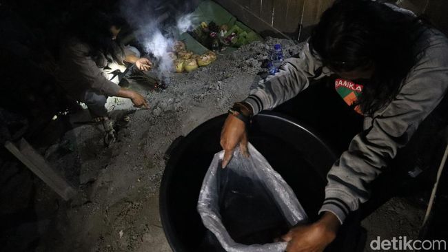 "Kita siapkan ayam walik sepasang, kelapa gading 8, ikan emas 8 penanda jumlah penambang, sama ikan melem 4 itu melambangkan kemelem (tenggelam)," kata Nasim saat ditemui, Sabtu (29/7/2023).