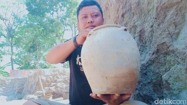 "Saya pas mencangkul untuk membuat tanah liat batu bata. Pertama yang kena cangkul bagian bawah guci yang posisinya miring," kata penemunya, Sardi (56) warga Dusun Kropakan kepada detikJateng, Senin (31/7).