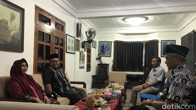 Bakal Calon Presiden (Bacapres) Ganjar Pranowo menemui ibunda Ketum PBNU KH Yahya Cholil Staquf (Gus Yahya), Nyai Muchsinah Cholil. Pertemuan dilakukan di ruang tamu kediaman Nyai Muchsinah Cholil di Kompleks Pondok Pesantren Raudlatut Thalibien, Leteh, Rembang.