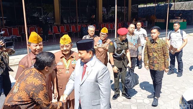 Menteri Pertahanan (Menhan) Prabowo Subianto menghadiri acara Hari Veteran Nasional (Harvetnas) di UNS Solo. Dalam acara itu dihadiri sejumlah Legiun Veteran Republik Indonesia (LVRI).