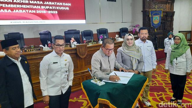 DPRD Kabupaten Kudus menggelar rapat paripurna mengumumkan usulan pemberhentian Bupati Kudus HM Hartopo yang akan habis masa jabatannya. DPRD Kudus mengusulkan tiga nama calon Penjabat (Pj) Bupati Kudus.