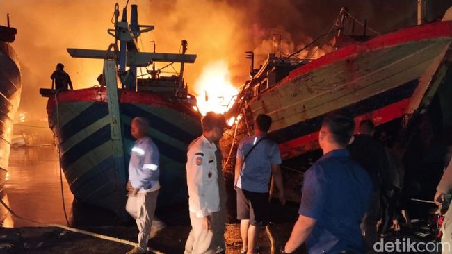 Kebakaran terjadi di Pelabuhan Jongor Kota Tegal, Jawa Tengah. Sejumlah kapal yang bersandar di pelabuhan itu dilalap si jago merah.