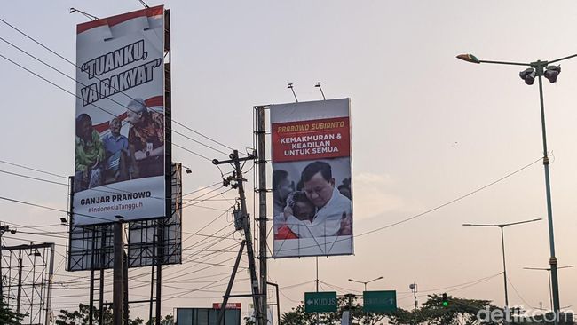 Baliho Ganjar Pranowo dan Prabowo Subianto terpasang besar di Jalan Sultan Fatah dekat traffic light arah Demak Kota-Semarang. Baliho kedua bakal capres tersebut terpasang berdampingan sama besarnya di area lingkar Demak.
