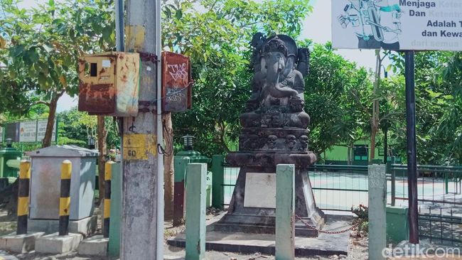 detikJateng mengunjungi monumen di tepi simpang empat jalan itu, Rabu (16/8/2023). Kondisinya lusuh dan tertutup tiang. Monumen setinggi sekitar tiga meter dengan patung Ganesha (gajah) duduk itu warna hitamnya meluntur.