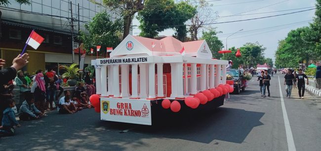 Ikon kabupaten Klaten yang menonjol dari hasil pembangunan dibuat miniatur diusung mobil. Terlihat ada gedung Grha Bung Karno, beras Rojolele Srinuk, Pasar Gedhe Klaten dan lainnya.