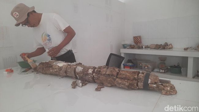 "9 Agustus 2023 kemarin warga menemukan atas nama Bapak Sadi (warga) Desa Terban Kecamatan Jekulo, beliau pas mulai menggarap lahan, kebetulan lahan itu ada kawasan Perhutani dia menemukan fosil yang dianggap aneh dan besar," kata Jamin kepada detikJateng di lokasi, Kamis (24/8/2023).
