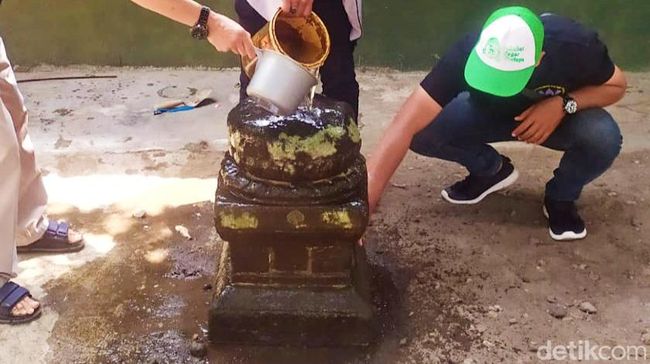 "Belum bisa disebut Yoni karena sebelah cuil, jadi kalau tidak ada cerat tempat keluar air ya belum bisa disebut Yoni. Dugaan lebih kuat ke lapik arca," papar Anshori.