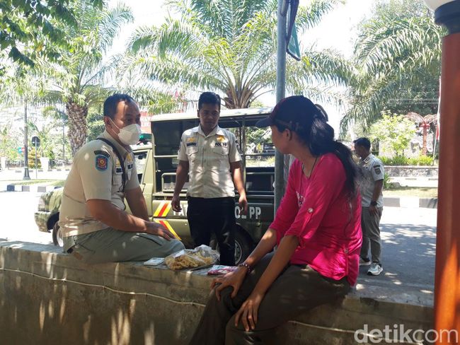 Petugas Satpol PP pun tak menyerah. Butuh waktu satu jam lebih untuk mendekati wanita itu dengan sabar dan hati-hati.