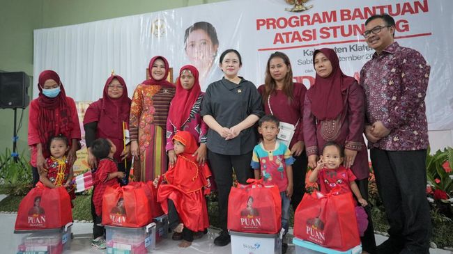 Ketua DPR RI Puan Maharani mengapresiasi upaya Pemkab Klaten menangani stunting di wilayahnya. Dalam kunjungan kerjanya, Puan turut menyalurkan 2.500 paket bantuan bagi balita stunting di Kabupaten Klaten.