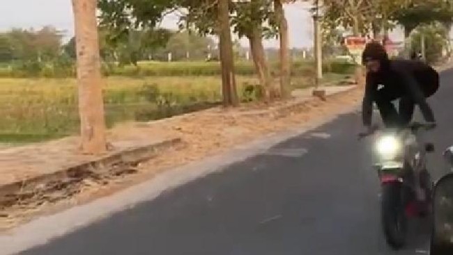 Warga sekitar, Taufik (21) menuturkan kejadian aksi sepeda motor itu terjadi hari Minggu (10/9) sore. Pengemudi sepeda motor itu melaju dari arah timur ke barat.
