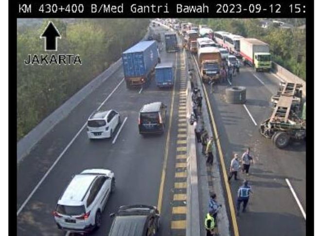 "Terjadi laka lantas tepatnya di KM 430 atau tanjakan Bukit Sari, truk tronton mengangkut besi gulungan jatuh," kata Kasat Lantas Polrestabes Semarang, AKBP Yunaldi lewat WhatsApp, Selasa (12/9/2023).