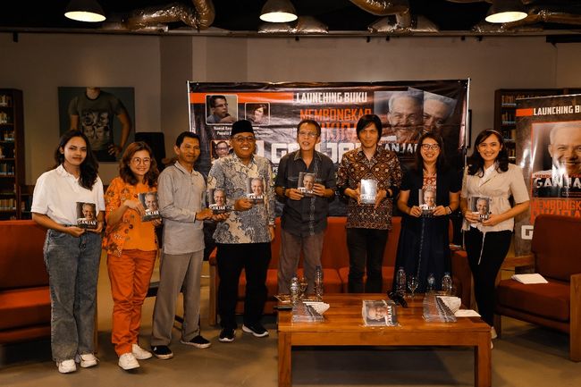 Ekonom Universitas Gadjah Mada (UGM) Poppy Ismalina bersama sejumlah tokoh nasional membongkar pemikiran Ganjar Pranowo lewat bedah buku "Membongkar Pikiran Ganjar" di Perpustakaan Freeform Wisma Bakrie, Jakarta Selatan. Poppy mengungkap tiga spirit besar yang disampaikan Ganjar untuk mengembangkan Indonesia menjadi negara maju dari sisi ekonomi.