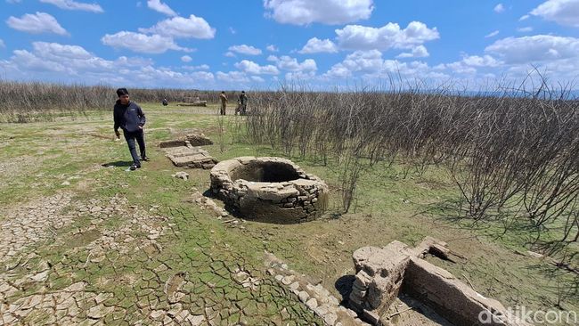Debit Waduk Gajah Mungkur (WGM) Wonogiri terus surut di musim kemarau. Surutnya air memunculkan sisa-sisa peradaban yang menjadi saksi kehidupan masyarakat sebelum dibangunnya waduk terbesar di Jawa Tengah itu.
