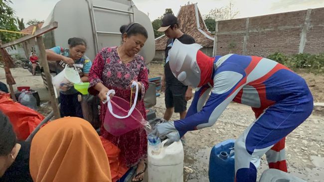 Komunitas Ayo Berbagai Pati menggandeng 'superhero Ultraman' untuk membantu warga yang terdampak kekeringan. Hal itu bertujuan untuk menarik donatur sekaligus menghibur warga yang sedang dilanda bencana kekurangan air bersih.
