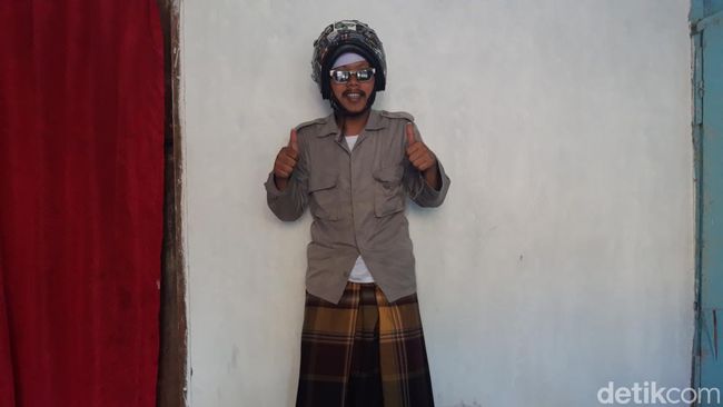"Dulu fesyen saya pokoke sarungan. Ingin ada ciri khas tersendiri, saya sarungan, bawa peci, terus jalan. Dimulai dari senang selawatan. Kalau sudah mulai selawatan, sambil bengak-bengok (teriak) selawatan, jadi orang itu memandang ada ketertarikannya, tertarik. Dulu pas itu belum pakai helm," katanya.