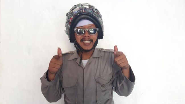 Saat berjualan, dia kerap mengenakan jas lengkap dengan dasinya. Tak lupa dia selalu mengenakan 'seragam kerja' lain berupa sarung dan helm di kepala.