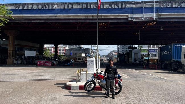 "Ada cargo pengiriman dari Thailand nyeberang Myanmar, tapi setelah sampai ternyata high cost. Mau nggak mau, saya harus balik ke Malaysia. (rencana etape 2) Saya kirim (motor) dari Malaysia masuk India," tuturnya.