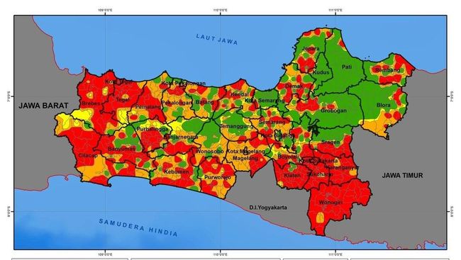 BMKG Stasiun Klimatologi Jawa Tengah mengeluarkan peta peringatan kekeringan untuk 10 hari pertama di bulan Oktober 2023. Sejumlah daerah masuk kategori merah atau awas.
