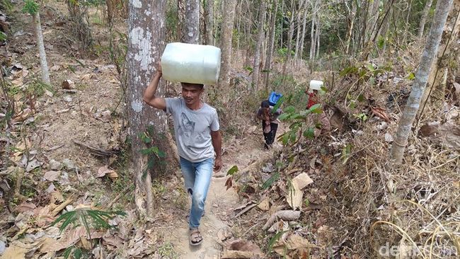 "Sumber air kecil harus menunggu giliran. Kalau dari sana ambil sewaktu-waktu satu jerigen (jeriken) digendong," kata Tukini kepada wartawan, Selasa (3/10/2023).