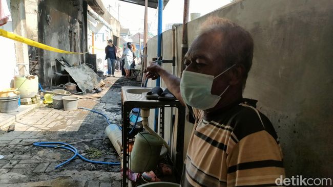 "Handphone anak saya saja juga ketinggalan. Ada kulkas, kompor, surat-surat terbakar. Anak saya nggak bolehin saya masuk," ucapnya.