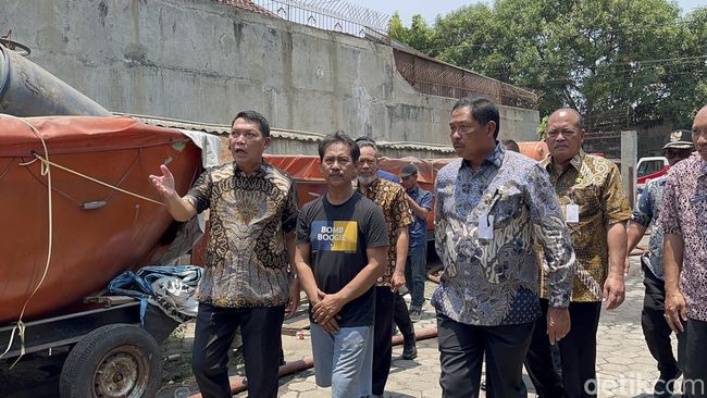 Penjabat (Pj) Gubernur Jawa Tengah (Jateng) Nana Sudjana meninjau lokasi kebakaran di Kampung Joyosudiran, Kecamatan Pasar Kliwon, Solo. Nana mengatakan rumah-rumah warga yang terdampak kebakaran akan diperbaiki pemerintah provinsi dan pemerintah Kota Solo.