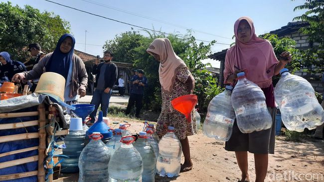 Sutrisno bersyukur karena kali ini ada bantuan air bersih dari sejumlah donatur. Meski begitu, dia harus mengantre sejak pagi demi mendapatkan air bersih. Sutrisno membawa total delapan galon dan jeriken untuk mendapatkan air bersih yang digunakan untuk konsumsi empat orang sekeluarga.