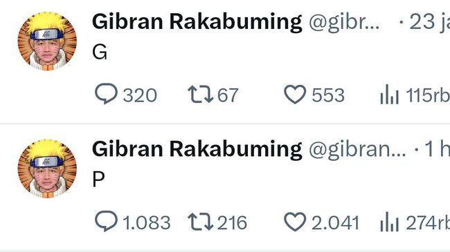 Dilihat di akun X milik Wali Kota Solo, Gibran mencuit satu huruf yakni P pada Rabu (11/10/2023) pukul 13.40 WIB. Kemudian disusul cuitan huruf G pada pukul 16.33 WIB,