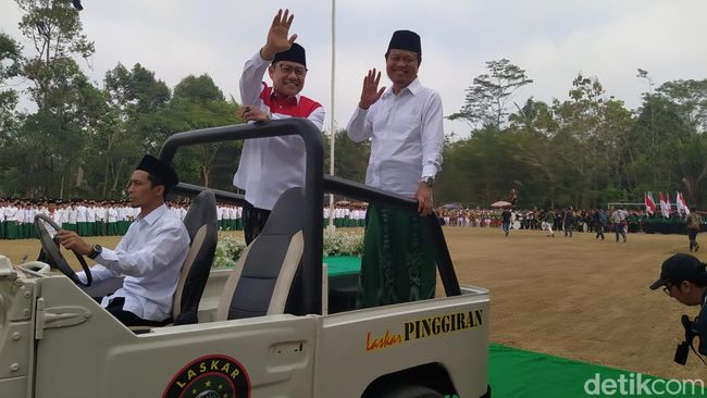 Kurang lebih pukul 08.22 WIB, Cak Imin bersama Gus Yusuf naik mobil jip terbuka dengan tulisan 'Laskar Pinggiran' melakukan pemeriksaan barisan. Saat melakukan pemeriksaan keduanya melambaikan tangan menyapa para santri.