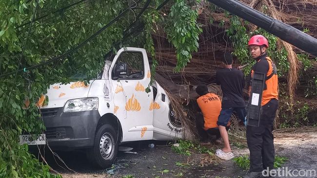 Sebanyak dua motor dan satu mobil tertimpa pohon tumbang di simpang tiga Jalan Monginsidi menuju Jalan Abdul Rahman Saleh, atau tepatnya di depan Stasiun Balapan, Kota Solo. Seorang pengemudi sempat terjepit usai mobilnya tertimpa batang pohon besar.